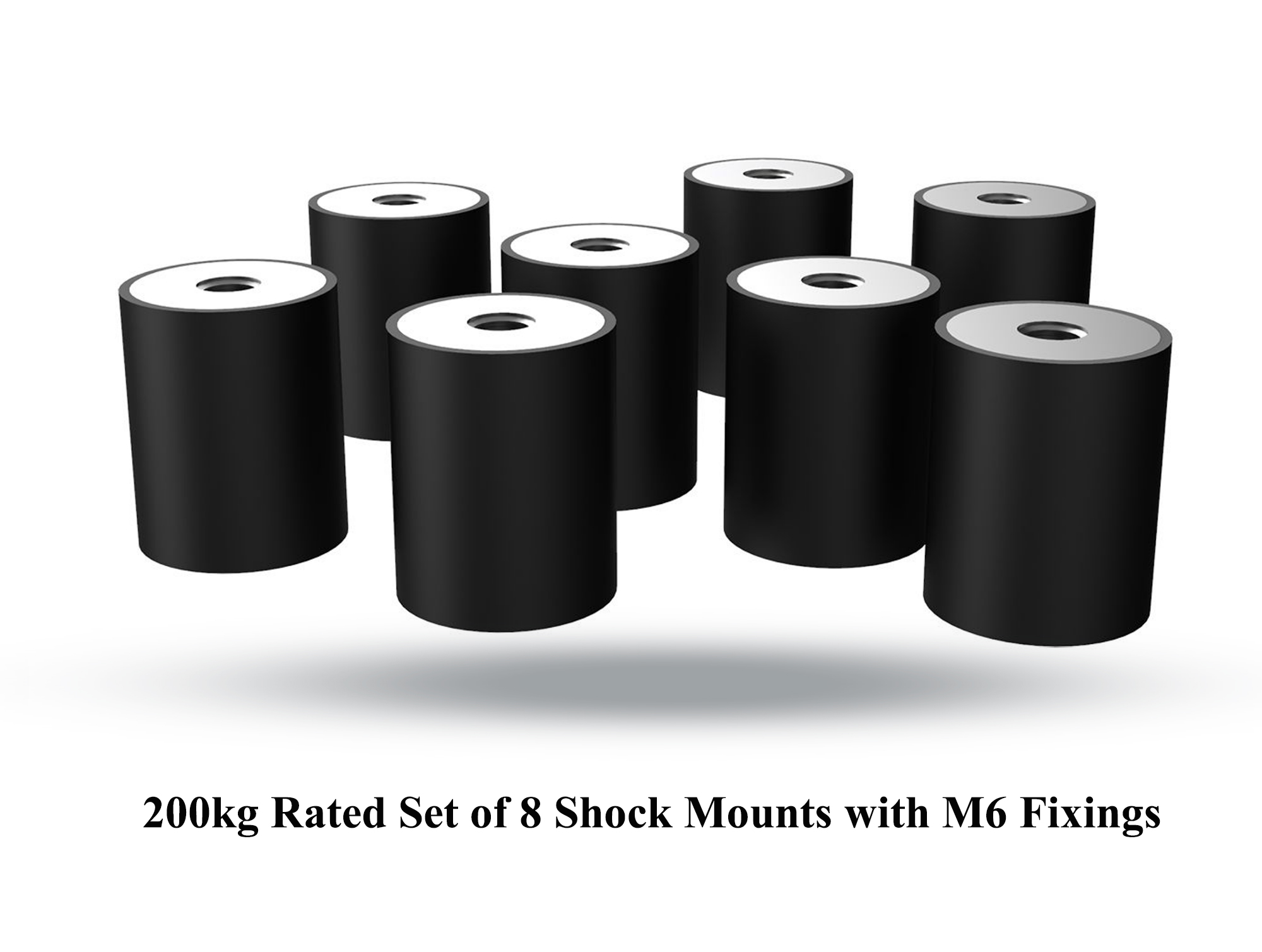 การซับแรงสะเทือนจะมีลูกยางรองรับจำนวน 8 ตำแหน่ง ด้านบน 4 ตำแหน่ง ด้านล่าง 4 ตำแหน่ง การรับน้ำหนักของลูกยางขึ้นอยู่กับน้ำหนักของอุปกรณ์โดยรวมทั้งหมด ซึ่งทางบริษัทฯจะเลือกขนาดของลูกยางให้เหมาะสมกับน้ำหนักของอุปกรณ์