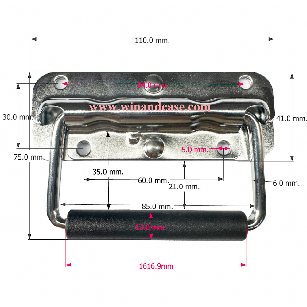 ทำจากเหล็กหนา 1 มม.ปั้มขึ้นรูป ชุบโครเมีย มียางรองที่หูยก เพื่อให้การจับที่นุ่มนวล วิธีติดตั้งนำเอามือจับไปทาบกับตำแหน่งที่ติดตั้งแล้วใช้สว่านเจาะนำ แล้วใช้รีเวทเบอร์ 6-4 หรือสกรูเกลียวปล่อยยึดก็ได้